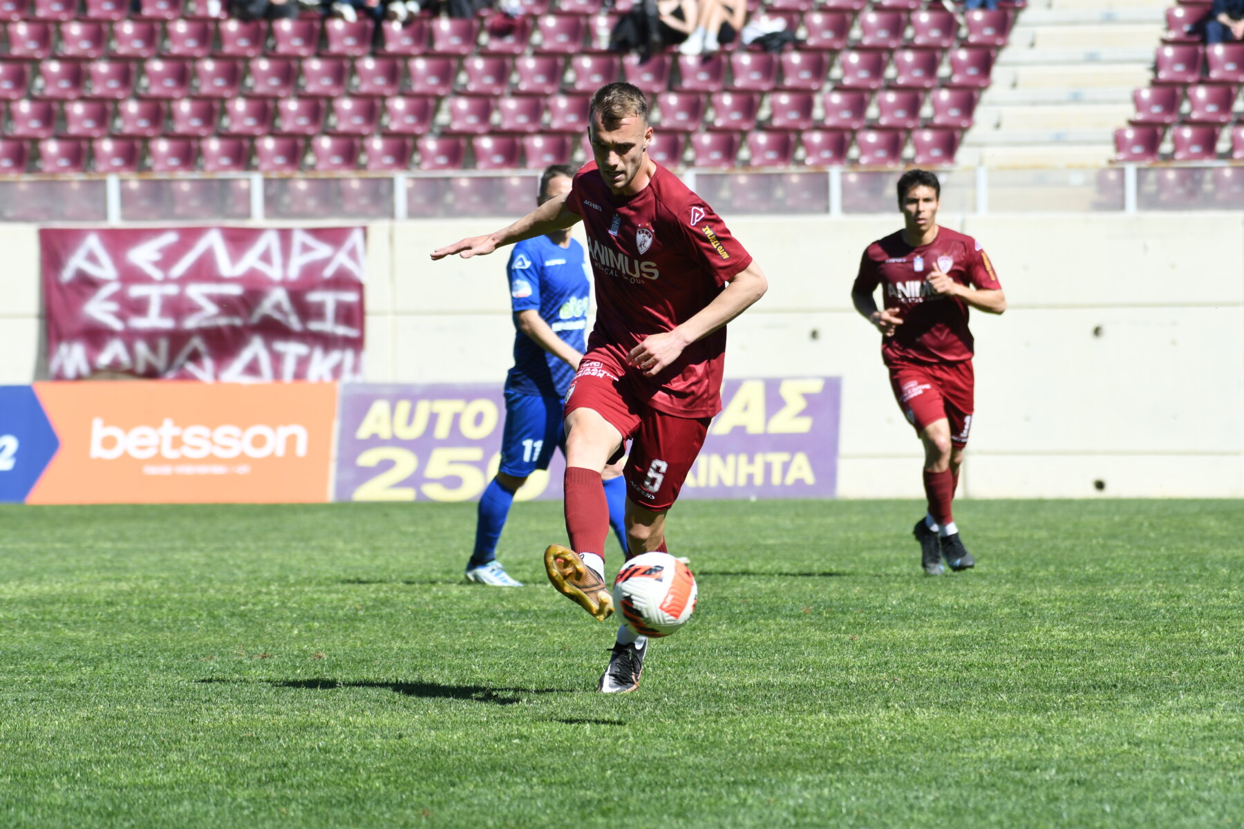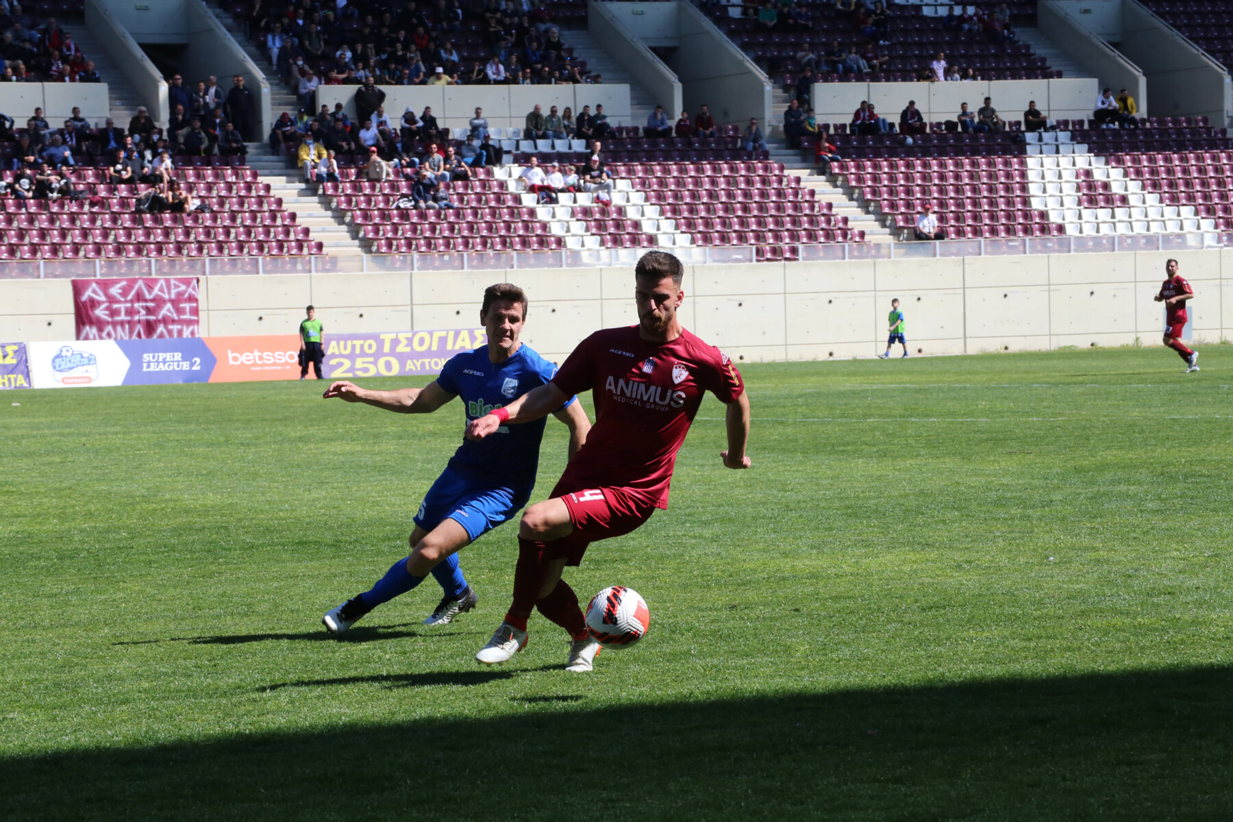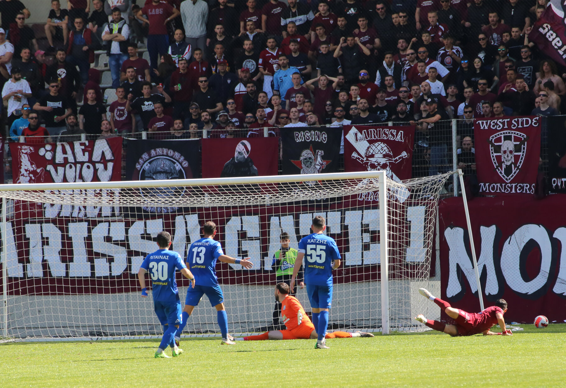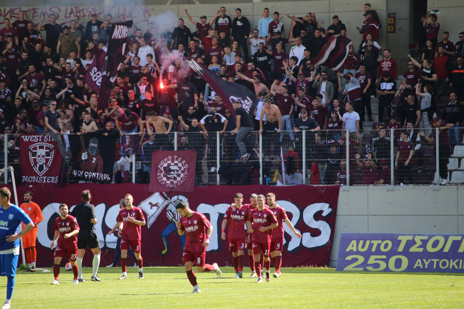 Κάπως έτσι ο αγώνας ξεκίνησε δυνατά, υπό τους ήχους των ασταμάτητων συνθημάτων των οργανωμένων οπαδών της ΑΕΛ από την Θύρα 1 του γηπέδου, που έδινε ρυθμό στο 4-3-3 των «βυσσινί» του Παναγιώτη Γκουτσίδη, έναντι του 4-2-3-1 των «κυανολεύκων» του Χρήστου Χατζηλιάδη!