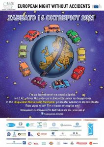 Το Ινστιτούτο Οδικής Ασφάλειας (Ι.Ο.ΑΣ.) «Πάνος Μυλωνάς» συνεχίζει δυναμικά τις δράσεις ενεργοποίησης και ευαισθητοποίησης των πολιτών για «έναν κόσμο χωρίς τροχαία δυστυχήματα». Έτσι, το Σάββατο 15 Οκτωβρίου, διοργανώνει, όπως κάθε χρόνο, τη 16η «Ευρωπαϊκή Νύχτα χωρίς Ατυχήματα» σε μεγάλες πόλεις στην Ελλάδα, μεταξύ αυτών και στη Λάρισα.