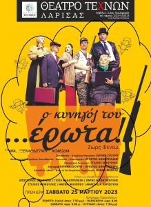 το Σάββατο 25 Μαρτίου στις 9.00,το βράδυ, θα κάνει την πρεμιέρα της η ξεκαρδιστική κωμωδία του Ζ.ΦΕΝΤΩ «Ο ΚΥΝΗΓΟΣ ΤΟΥ… ΕΡΩΤΑ» σε σκηνοθεσία: ΕΙΡΗΝΗΣ ΖΓΟΥΡΗ – ΧΡΗΣΤΟΥ ΔΗΜΗΤΡΙΑΔΗΜε Παραστάσεις κάθε ΠΕΜΠΤΗ: 7.30 (Λαϊκή Απογευματινή με γενική είσοδο, των 8€), την ΠΑΡΑΣΚΕΥΗ & ΣΑΒΒΑΤΟ: στις 9.00 το βράδυ και κάθε ΚΥΡΙΑΚΗ: (απογευματινή στις: 7.30).