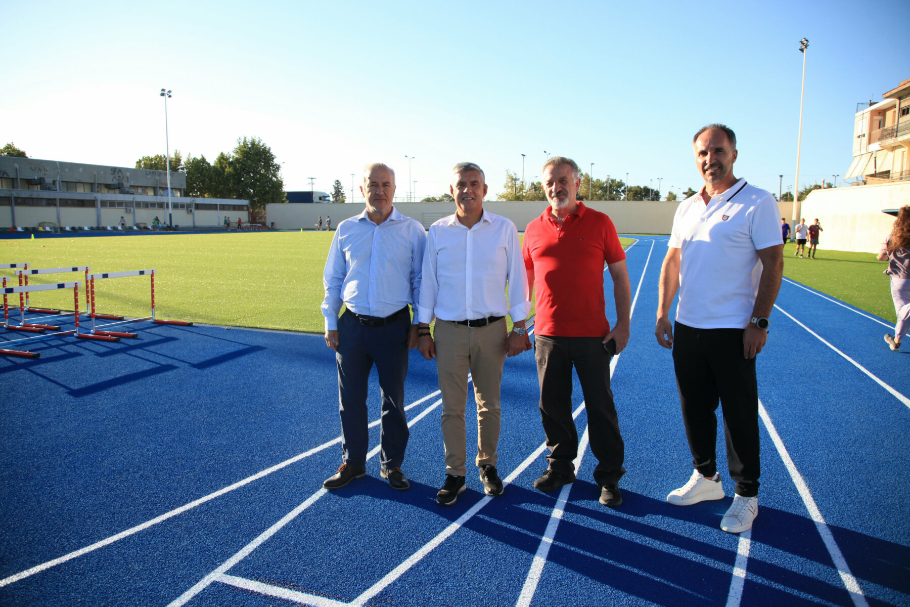 Κοντά του και ο πρόεδρος του ΕΑΚΛ, Γιάννης Κουρδής, ο πρόεδρος της ΕΑΣ ΣΕΓΑΣ, Ηλίας Καφές, αλλά και ο πρώην πρωταθλητής στίβου και στέλεχος της Περιφέρειας, Τάσος Δημήτσιος, που γνωρίζει καλύτερα απ’ τον καθέναν την αξία αυτού του έργου… Ταυτόχρονα, τα χρώματα προϊδεάζουν και για την εικόνα που έρχεται εντός σταδίου με την επικείμενη τοποθέτηση του νέου χλοοτάπητα.